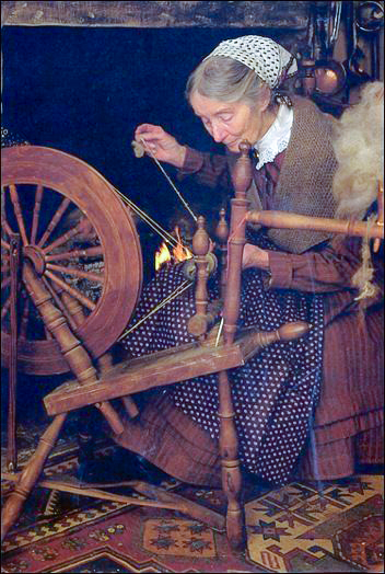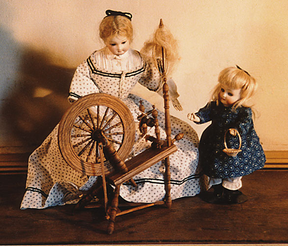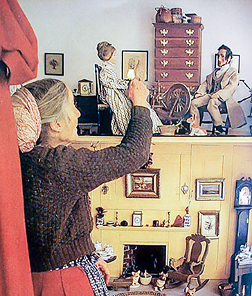 Tasha Tudor spinning on the wheel I was to make in miniature.