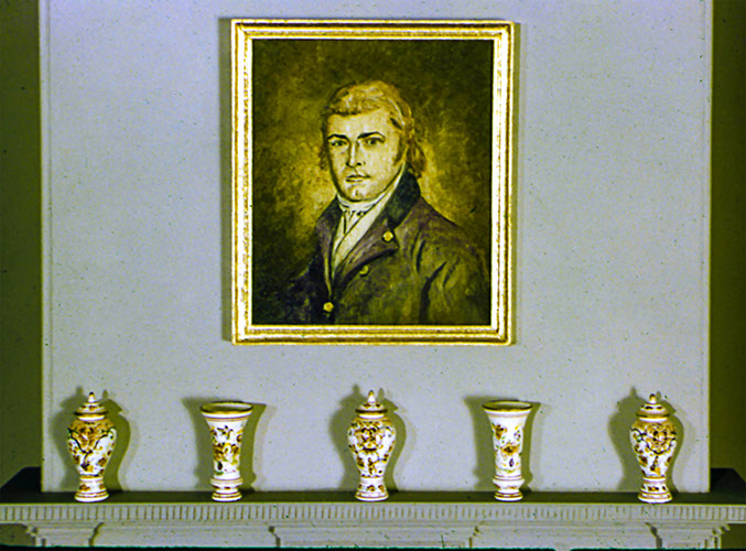 Detail of hand painted garniture and portrait of Captain Mc Cobb
