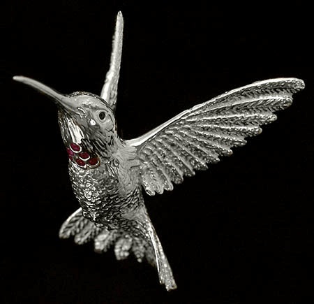 six real rubies on breast and garnet eyes - 2 1/4” overall