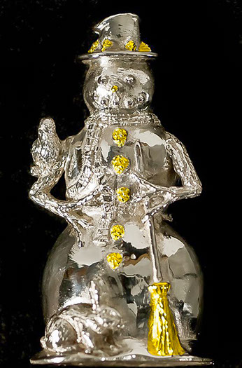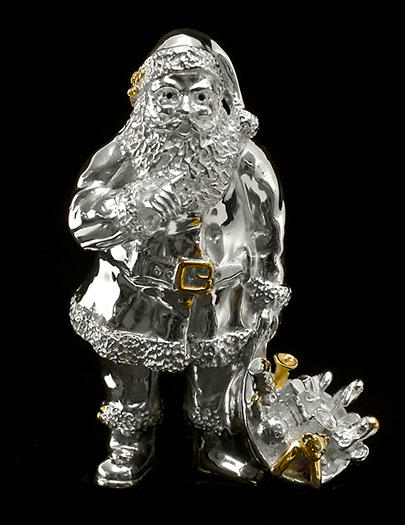 Every Christmas season brings a new inspiration for a a silver ornament. Each is a made of solid sterling silver weighing an average of 2 troy oz. Many have 24Kt. gold vermeil accents and precious stones. All are signed and numbered limited editions.