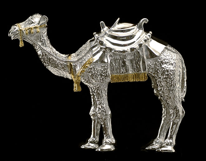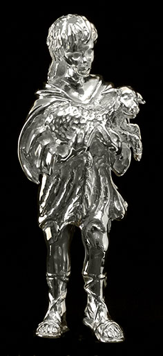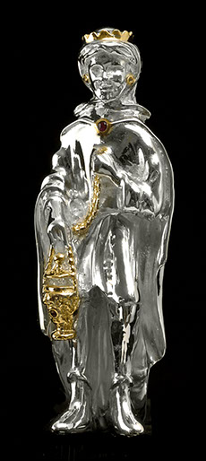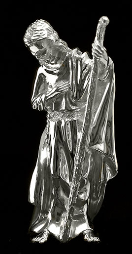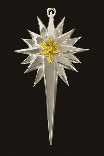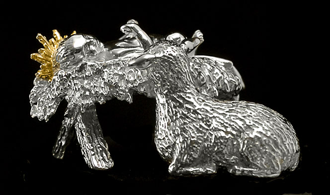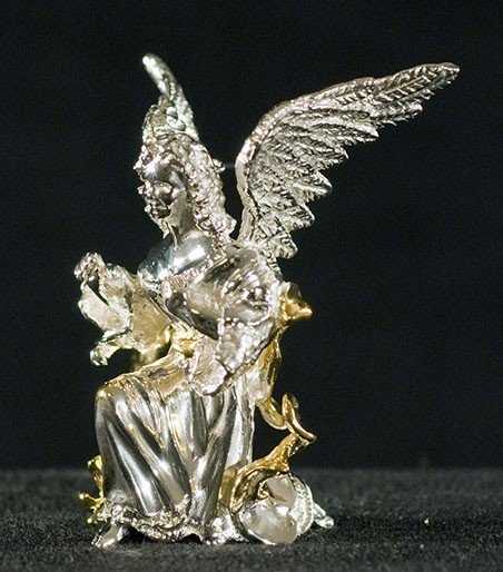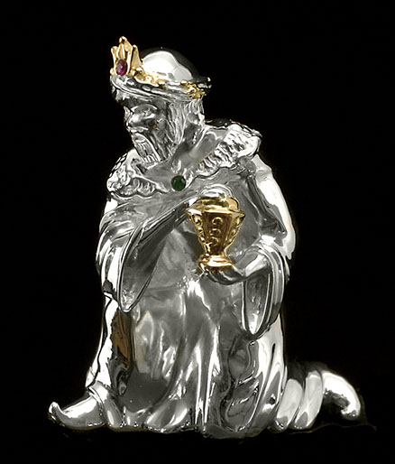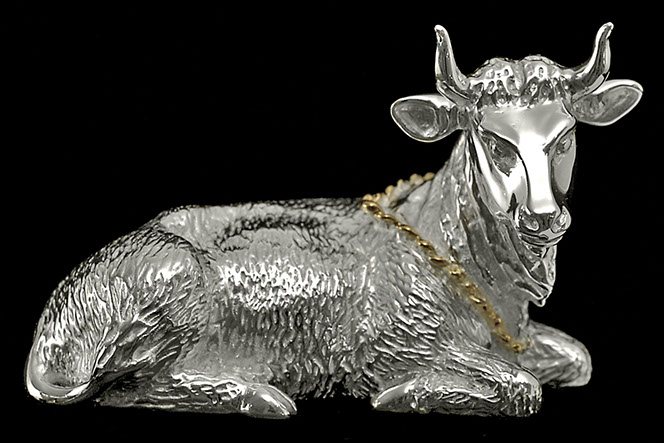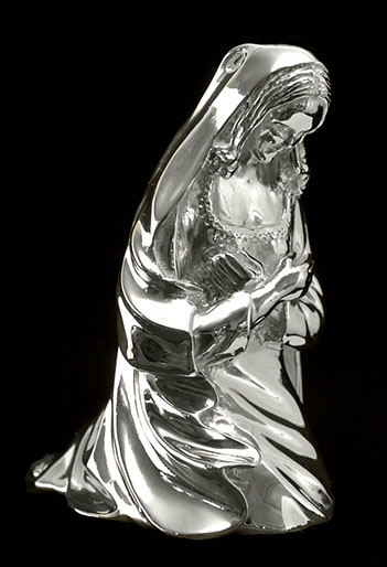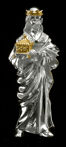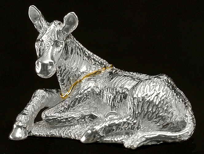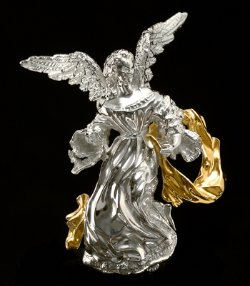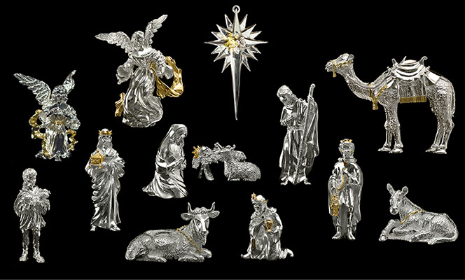 The sterling silver Nativity set was started started in 1993 with the standing Angel. A new design is added annually. Each is a made of solid sterling silver weighing an average of 3 toz. Many have 24Kt. gold vermeil accents and precious stones. Each piece is a signed, dated and numbered limited edition of 150.