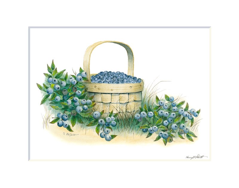 Basket of Blueberries - Watercolor from ABCs of Maine